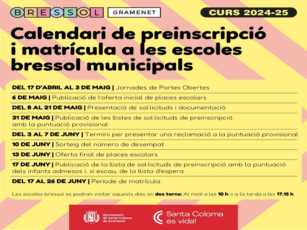 Aquest tràmit també es podrà realitzar a l’Oficina Municipal d’Escolarització (OME) amb cita prèvia trucant al 934 624 058 o enviant un correu electrònic a escolesbressol@gramenet.cat.